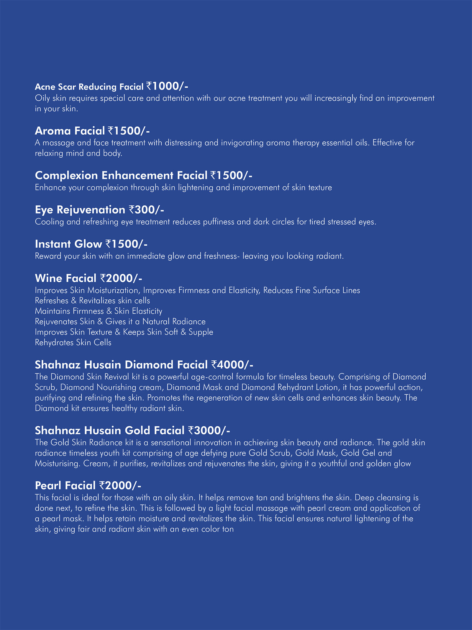 • Facials